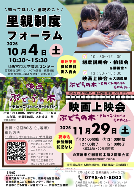 さて、10月は里親推進月間です。当センターでは10/4(土)に里親制度フォーラム、11/29(土)に映画上映会を開催します。どなたでもご参加いただけますので、お気軽にお越しください♪