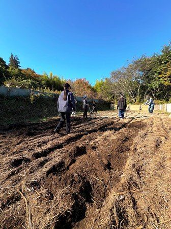 茅葺き屋根に使うわらを確保するため、毎年畑で小麦を育てています。今年は昨年よりも種まきの面積を広げ、より多くの収穫を目指してのスタートとなりました。一粒ずつ丁寧に種をまいていく作業は、地味なようでいて意外と体力勝負です。ですが、種まきが終わった畑を見渡すと、ここからどんなふうに育っていくのか、収穫の季節が今から楽しみです。