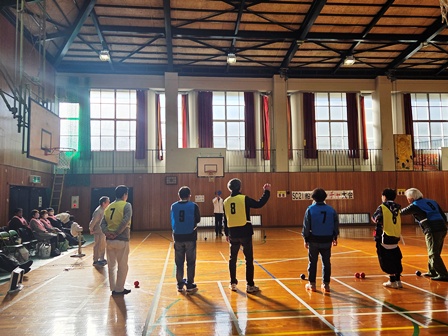11月30日(日)、体育館にて船坂ボッチャ大会が行われました。毎年思うのですが、会場でいただける参加賞がなかなか充実していて、助かります!今年もトイレットペーパーや食器洗い洗剤、排水口ネットなど、生活用品をもらいました。ありがとうございます。