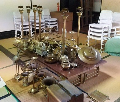 実はこの2週間前の15日、報恩講の際に飾られる仏具を綺麗にする、いわゆる”みがき”が行われました。善照寺に着くと香炉や燭台等の大小様々な仏具が、本堂に置かれていました。そこからクリームとブラシを使ってせっせせっせと、せっせせっせと、みがいてみがいて飽きてもみがいて、そのおかげで早めに終えることが出来ました。”みがき”が来年も行われるかと思うとゲンナリ……じゃなくて、とっても楽しみです(^-^;。